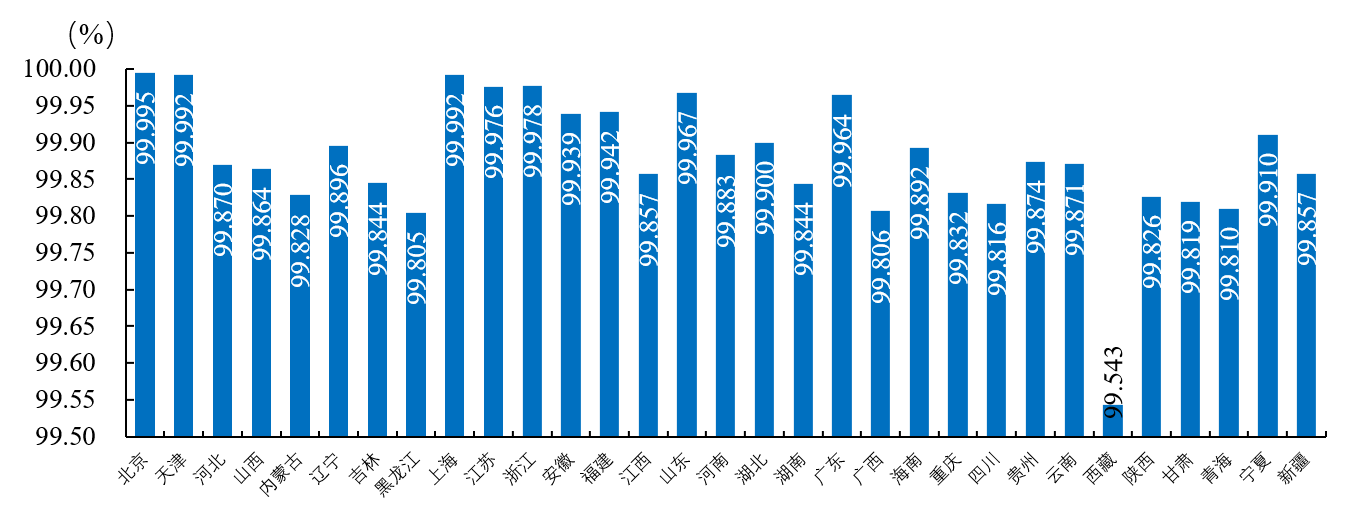2022年,全國31個(gè)省級行政區(qū)中,北京、天津、上海、浙江、江蘇、廣東、山東的用戶平均供電可靠率高于99.95%,西藏的用戶平均供電可靠率低于99.80%。