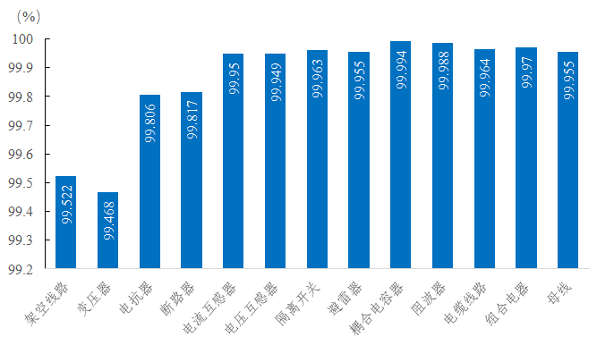 2022年輸變電設(shè)施運(yùn)行可靠性指標(biāo)總體位置在較高水平,十三類輸變電設(shè)施的可用系數(shù)保持在99.45%以上,強(qiáng)迫停運(yùn)率維持在0.3次/百千米(臺、套、段)年以下。