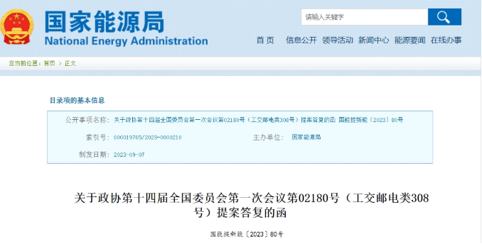 國家能源局在對(duì)十四屆全國人大一次會(huì)議第7024號(hào)建議的答復(fù)中指出: