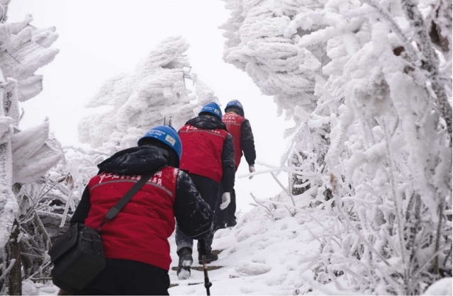 國網(wǎng)重慶電力員工雪中巡檢220千伏華城線。