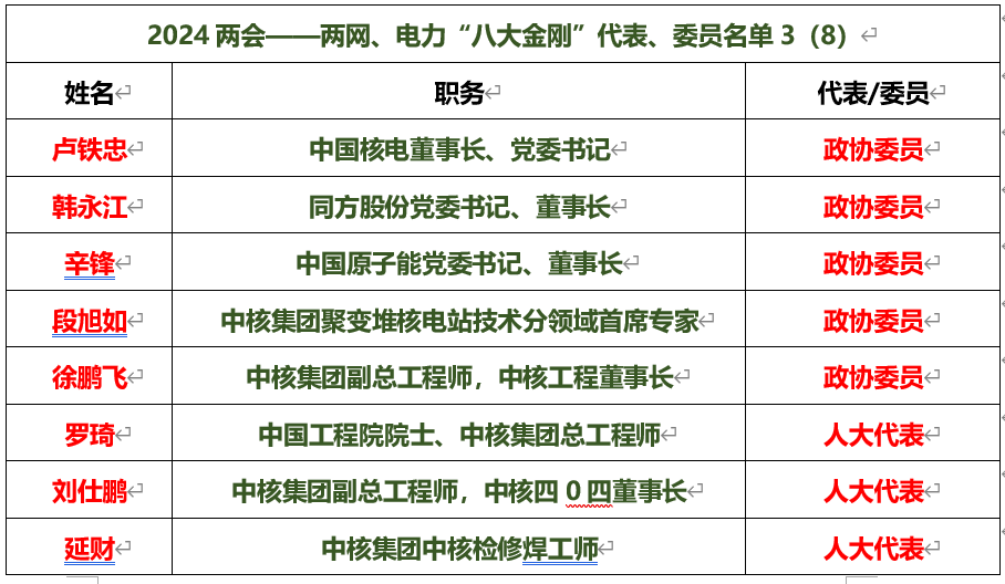 (1)楊長利 中國廣核集團董事長、黨委書記(政協(xié)委員)