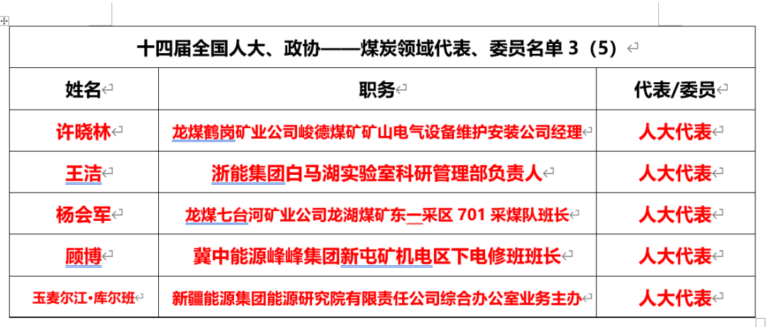 煤炭領(lǐng)域有25人當(dāng)選十四屆全國人大代表、政協(xié)委員,全國人大代表有19名,全國政協(xié)委員有6名。