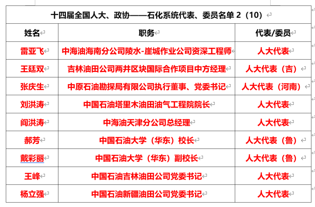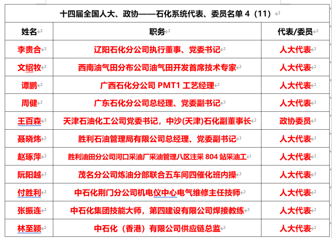四、石化系統(tǒng)代表、委員(41名:代表34、委員7)
