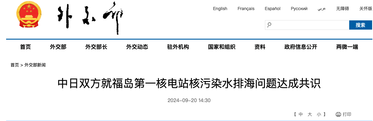 2023年8月24日,日本政府單方面啟動福島第一核電站核污染水排海。中國作為最重要的利益攸關國之一,堅決反對這一不負責任的做法。同時,我們敦促日方認真回應國內(nèi)外關切,切實履行自身責任,全面配合建立利益攸關國實質(zhì)參與、獨立、有效的長期國際監(jiān)測安排,并同意中方獨立取樣監(jiān)測。