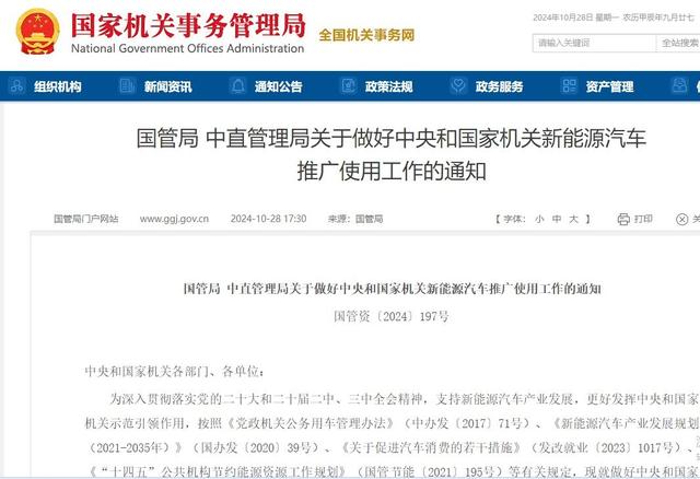 10月28日,據(jù)國家機關(guān)事務(wù)管理局網(wǎng)站消息,國管局、中直管理局日前聯(lián)合印發(fā)《關(guān)于做好中央和國家機關(guān)新能源汽車推廣使用工作的通知》,旨在支持新能源汽車產(chǎn)業(yè)發(fā)展,更好發(fā)揮中央和國家機關(guān)示范引領(lǐng)作用。