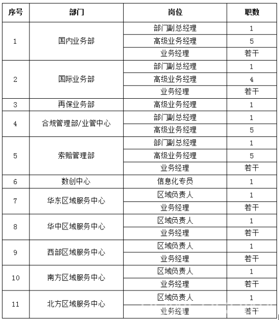 1.大學(xué)本科及以上學(xué)歷,5年以上保險公司、保險經(jīng)紀(jì)行業(yè)相關(guān)工作經(jīng)驗,有再保險業(yè)務(wù)工作經(jīng)歷者優(yōu)先。