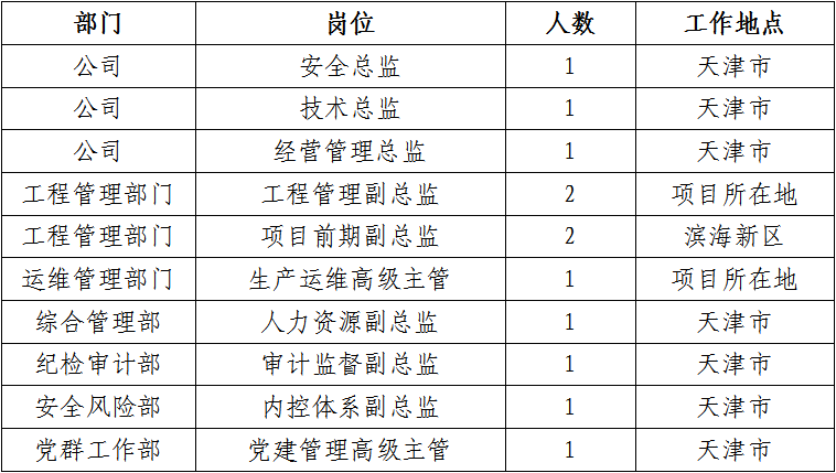 按照公司發(fā)展規(guī)劃及產(chǎn)業(yè)布局需求,現(xiàn)面向社會公開選聘以下崗位,具體如下: