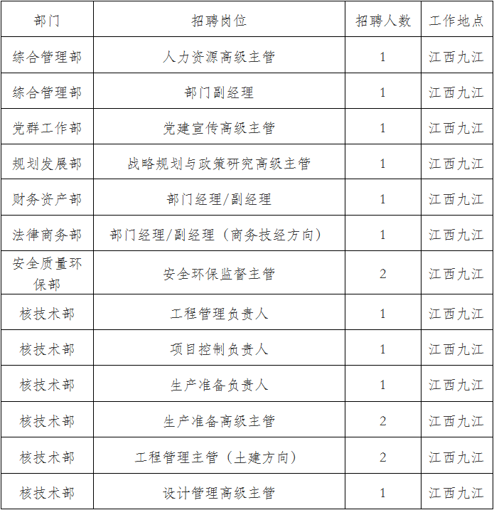 面向社會(huì)公開(kāi)招聘。國(guó)家電投集團(tuán)系統(tǒng)內(nèi)員工優(yōu)先。