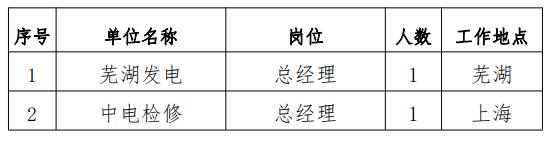 為進(jìn)一步引進(jìn)和吸納高素質(zhì)人才,現(xiàn)市場化選聘在中國電力所屬三級單位蕪湖發(fā)電有限責(zé)任公司(簡稱“蕪湖發(fā)電”)總經(jīng)理、中電電力檢修工程有限公司(簡稱“中電檢修”)總經(jīng)理崗位。具體事項(xiàng)如下:
