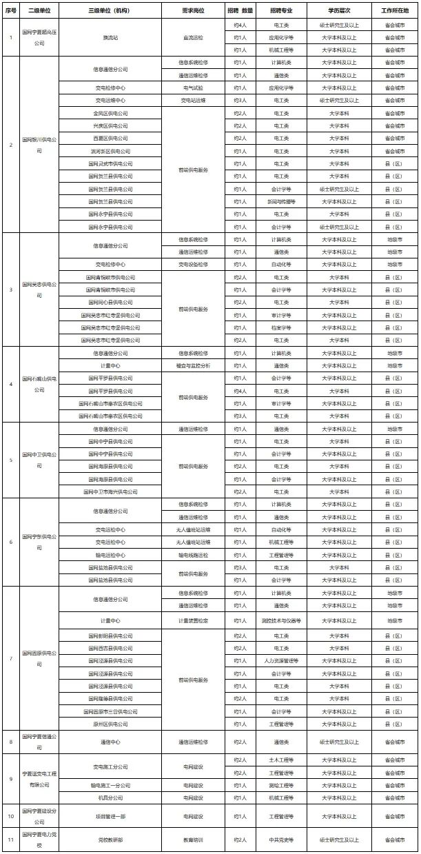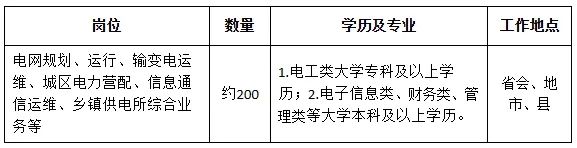 (二)招聘崗位:規(guī)劃、建設(shè)、運(yùn)?、運(yùn)維檢修、營銷、信息通信、物資和培訓(xùn)教育等專業(yè)?線崗位。