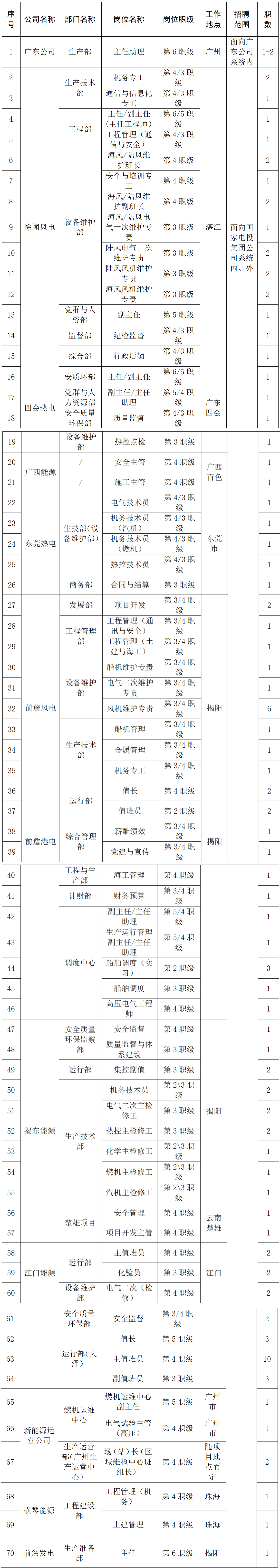 根據(jù)廣東公司工作需要和招聘管理相關(guān)規(guī)定,現(xiàn)就公司本部及所屬三級單位共計70個崗位進(jìn)行公開招聘。具體如下: