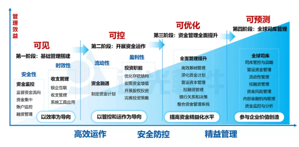 司庫管理注重強(qiáng)化營運(yùn)資金、流動性、資本結(jié)構(gòu)、利率匯率風(fēng)險和融資的管控,通過司庫體系建設(shè),企業(yè)可將資金被動管理轉(zhuǎn)變?yōu)橹鲃庸芾怼⒊肮芾?,?shí)現(xiàn)集團(tuán)各類金融資源可視、可控和增值,成為集團(tuán)戰(zhàn)略落地的堅(jiān)實(shí)保障。