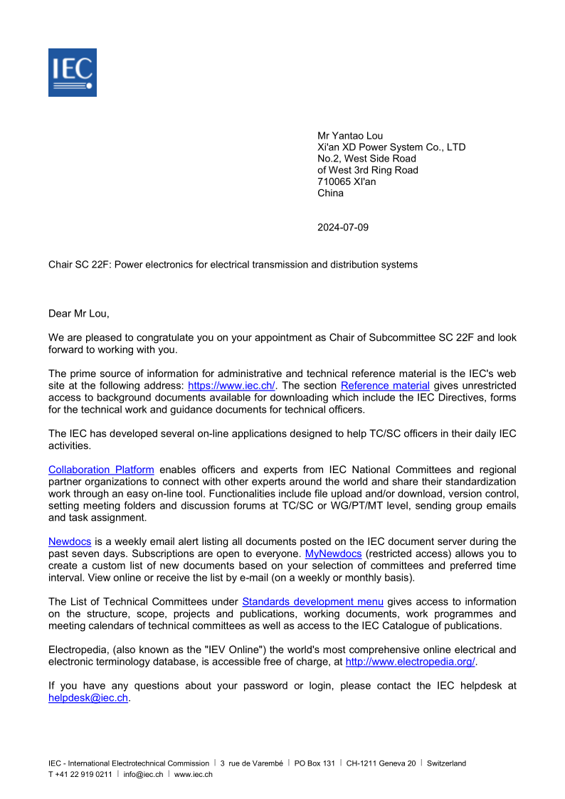 IEC TC22 SC22F技術(shù)委員會(huì)自1970年成立以來,一直致力于用于輸配電系統(tǒng)的電力電子設(shè)備及其控保、監(jiān)測(cè)和其他輔助系統(tǒng)等的標(biāo)準(zhǔn)化工作,為促進(jìn)該領(lǐng)域的技術(shù)統(tǒng)一性與通用性作出了重要貢獻(xiàn),在全球范圍內(nèi)為相關(guān)研究與應(yīng)用的開展提供明確的路線與框架,對(duì)全球輸配電系統(tǒng)電力電子設(shè)備的發(fā)展有著深遠(yuǎn)影響。同時(shí)作為一個(gè)全球化標(biāo)準(zhǔn)制定平臺(tái),也是國家特高壓直流輸電技術(shù)與裝備技術(shù)國際輸出的重要窗口。