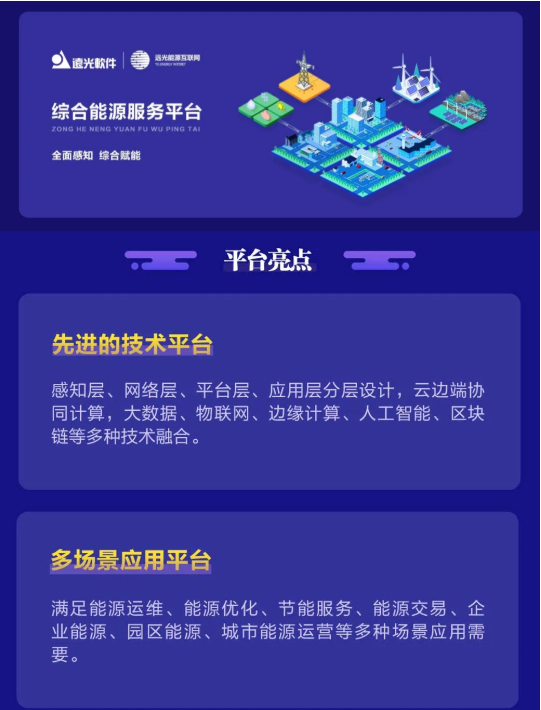 遠光綜合能源服務(wù)平臺是以物聯(lián)網(wǎng)為載體,以大數(shù)據(jù)、人工智能等技術(shù)為基礎(chǔ),提供綜合能源供應(yīng)、銷售、消費服務(wù)的綜合服務(wù)云平臺。平臺以能源用戶為中心,提供信息采集、能效分析、節(jié)能服務(wù)、需求響應(yīng)、能源托管、能源交易等服務(wù),為綜合能源服務(wù)商的客戶服務(wù)、業(yè)務(wù)創(chuàng)新、商業(yè)模式創(chuàng)新等提供支持。平臺可支撐企業(yè)綜合能源、園區(qū)綜合能源、智慧城市綜合能源運營。