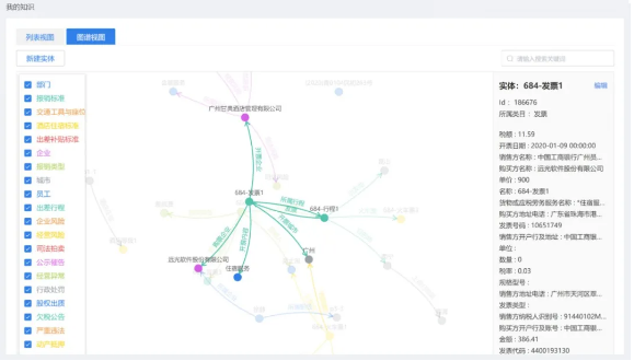 通過遠(yuǎn)光軟件“知識圖譜應(yīng)用平臺”的圖譜構(gòu)建模塊,可以將審單過程中需要用到的各種實體融合到一張圖中,非常直觀的定義各類實體間的關(guān)系。再通過RPA或外部系統(tǒng)提供的數(shù)據(jù)接口,將實體所對應(yīng)的具體數(shù)據(jù)導(dǎo)入,從而形成我們審單所需要的各類知識。單據(jù)中包含了哪些信息,哪些需要被重點關(guān)注,在圖中一目了然,真正做到了“哪里不清楚點哪里”。最后,將審單規(guī)則配置到圖譜中,就可以實現(xiàn)報銷單的自動審核。