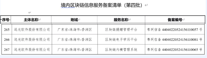 遠(yuǎn)光區(qū)塊鏈3款產(chǎn)品再獲國(guó)家網(wǎng)信辦區(qū)塊鏈信息服務(wù)備案