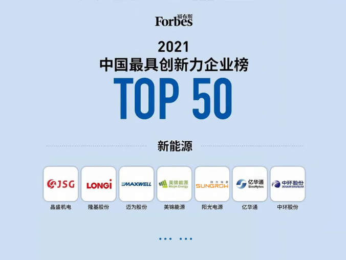 福布斯中國日前發(fā)布2021年中國最具創(chuàng)新力企業(yè)榜單,共計提名了50家最具創(chuàng)新力并持續(xù)成長的中國企業(yè)。陽光電源憑借在新能源領域多年的持續(xù)穩(wěn)健運營、領先的科創(chuàng)實力登陸榜單。