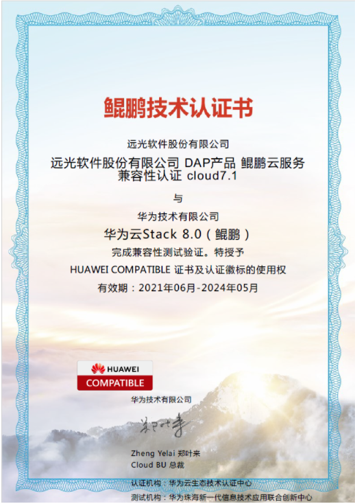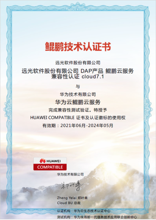遠光達普(YG-DAP)基于華為云的鯤鵬服務(wù)器,成功通過了性能測試、兼容性測試、安全性測試等,滿足鯤鵬兼容性認證要求,驗證了系統(tǒng)能夠應(yīng)對不同業(yè)務(wù)場景時所使用基于鯤鵬云服務(wù)的性能需求,證明了系統(tǒng)具有高度完整性、強大開放性和兼容性,運行穩(wěn)定,完全適配國產(chǎn)設(shè)備以及系統(tǒng)平臺,滿足國產(chǎn)化安全可控的要求。