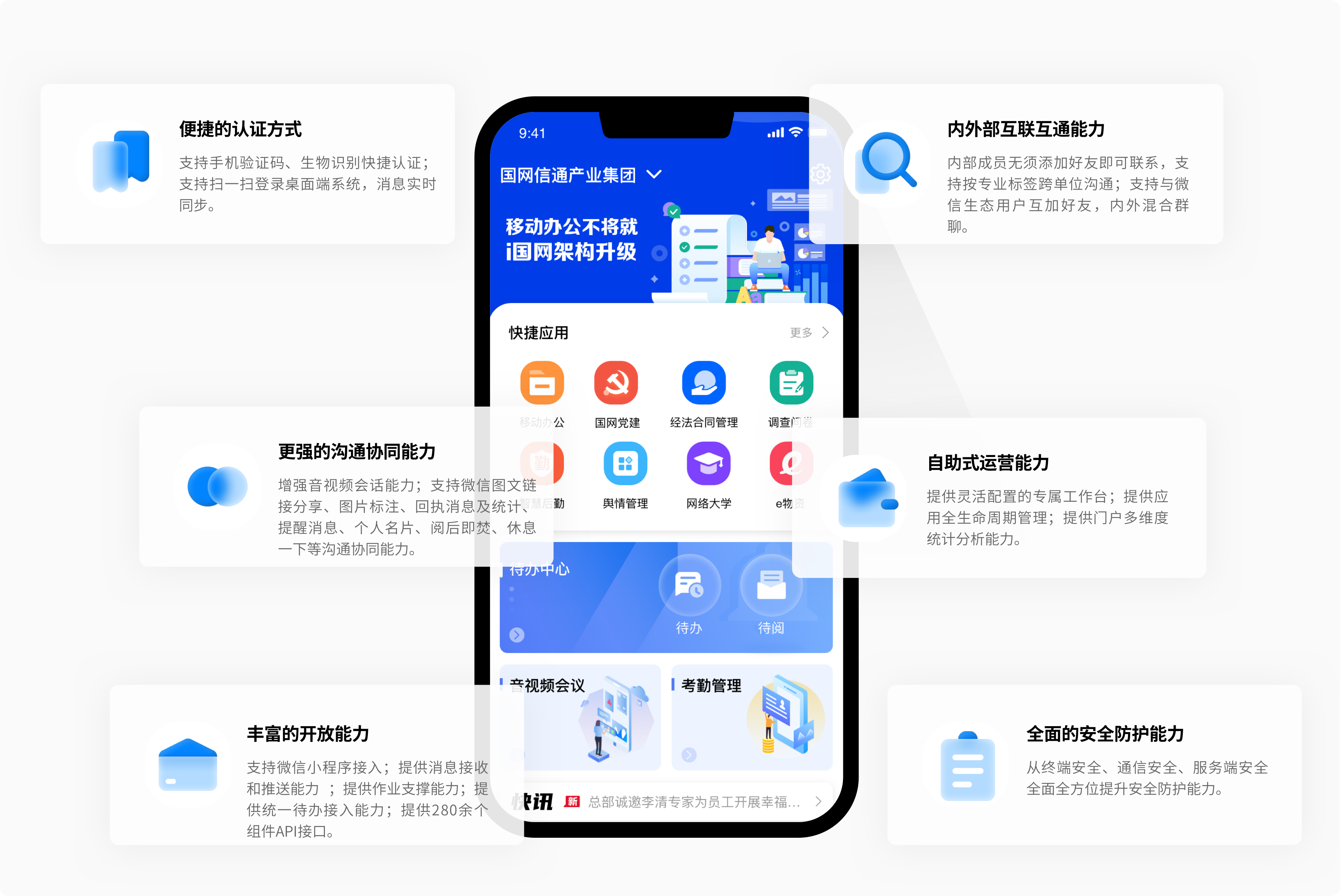 工具更高效。提供零代碼表單、統(tǒng)一待辦、音視頻會(huì)議、微文檔等平臺(tái)級(jí)效率工具,為企業(yè)成員打造更高效的協(xié)同辦公與通訊工具。