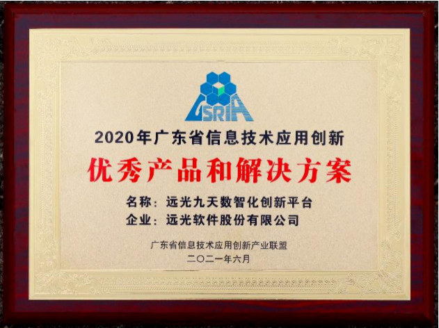 遠(yuǎn)光九天平臺(tái)榮獲“廣東省信息技術(shù)應(yīng)用創(chuàng)新優(yōu)秀產(chǎn)品和解決方案”