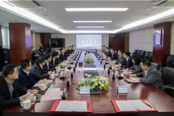 12月14日,陽光電源與中廣核新能源在合肥簽署戰(zhàn)略合作協(xié)議,雙方將在光、風(fēng)、儲、電、氫等領(lǐng)域進一步深化合作。中廣核新能源黨委委員、總會計師劉超,副總經(jīng)理鄭海明,科技公司總經(jīng)理陳勇,市場開發(fā)部副總經(jīng)理梁亮,山東、青海、安徽公司等領(lǐng)導(dǎo),陽光電源副董事長張許成,副總裁彭超才,陽光新能源副總裁孫偉,光儲、風(fēng)能、陽光新能源等業(yè)務(wù)負責(zé)人出席簽約儀式。