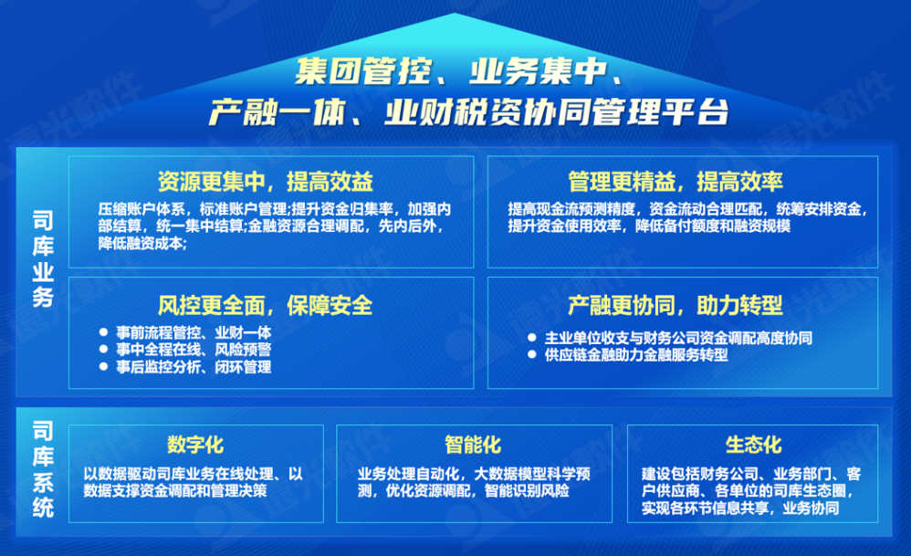 遠光軟件深耕財務數(shù)字化領(lǐng)域多年,基于集團企業(yè)資金精益管理需求,聚焦資金效率、效益和安全,充分應用“大云物移智鏈”等新興技術(shù),自主研發(fā)出遠光全球司庫管理系統(tǒng),構(gòu)建上下互通、內(nèi)外互聯(lián)的資金管理體系,促進業(yè)財在更深層次融合、資金在更大范圍內(nèi)共享,推動資金管理向數(shù)字化、智能化、生態(tài)化轉(zhuǎn)型。