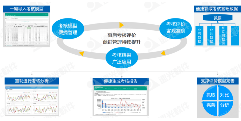 遠(yuǎn)光全面預(yù)算管理解決方案支持一鍵導(dǎo)入預(yù)算考核模型,通過設(shè)置取數(shù)公式,自動獲取各單位的考核基礎(chǔ)數(shù)據(jù),通過模型內(nèi)置的考核計算方法得到各單位各項考核指標(biāo)的得分和排名數(shù)據(jù),實現(xiàn)整個評分過程的自動處理。