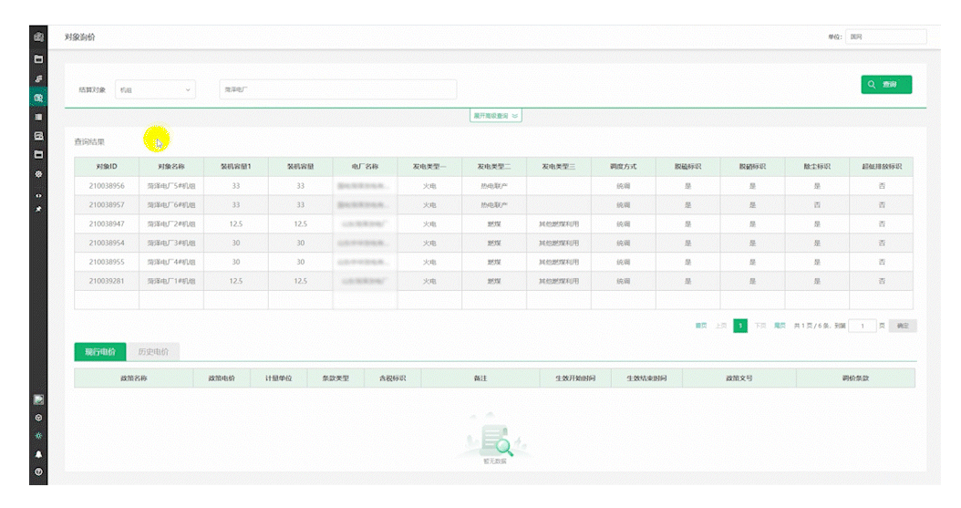 按結(jié)算對(duì)象類型分類查找,實(shí)現(xiàn)快速獲取具體結(jié)算對(duì)象的現(xiàn)行政策電價(jià)及歷史政策電價(jià),與電費(fèi)結(jié)算的執(zhí)行電價(jià)進(jìn)行稽核對(duì)比,降低電價(jià)執(zhí)行風(fēng)險(xiǎn)。
