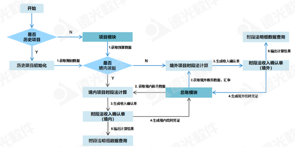 遠光軟件通過對有跨境業(yè)務(wù)的某能源建設(shè)及施工央企相關(guān)業(yè)務(wù)的深入研究,結(jié)合先進軟件技術(shù)和新收入準則要求自主研發(fā)出“時段法收入核算系統(tǒng)”(以下簡稱“系統(tǒng)”)。