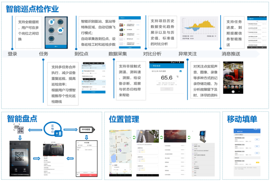目前,遠光“智能資產(chǎn)管理解決方案”已在多家大型集團企業(yè)成功應(yīng)用。例如:2018年底,遠光軟件為某冶金化工集團建立了一套全集團共享的智能資產(chǎn)管理平臺,通過物聯(lián)網(wǎng)、移動互聯(lián)等技術(shù)打通實物資產(chǎn)數(shù)據(jù)鏈路,基于資產(chǎn)身份編碼實現(xiàn)“一物一碼一標簽、身份貫穿全周期”,實現(xiàn)資產(chǎn)的業(yè)務(wù)流、實物流、價值流、信息流“四流合一”的高度集約化管理。在平臺建設(shè)過程中,遠光軟件對設(shè)備巡點檢、資產(chǎn)盤點等需在資產(chǎn)現(xiàn)場開展的業(yè)務(wù)場景進行了全面的梳理,并構(gòu)建了移動應(yīng)用APP。利用移動終端設(shè)備和個人智能手機自動采集設(shè)備運行工況、資產(chǎn)GPS定位、人員巡檢步數(shù)等信息,支持移動端快捷發(fā)起業(yè)務(wù)流程及移動審批,實現(xiàn)資產(chǎn)實物價值信息的全周期查詢,全面提高了該冶金化工集團的資產(chǎn)管理業(yè)務(wù)處理效率及數(shù)據(jù)整合能力。
