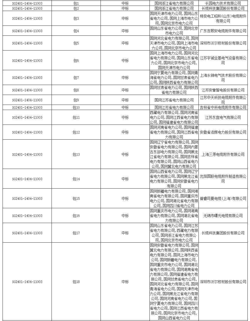 電纜附件國(guó)網(wǎng)2024年第一批采購(gòu) 長(zhǎng)纜中標(biāo)2包1403萬(wàn)居首