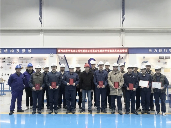 其中,2023年組織國(guó)網(wǎng)客戶(hù)(包括國(guó)網(wǎng)天津市電力公司電纜分公司、國(guó)網(wǎng)石家莊供電公司、國(guó)網(wǎng)濟(jì)南供電公司、國(guó)網(wǎng)南昌供電公司、國(guó)網(wǎng)保定供電公司、國(guó)網(wǎng)鄭州供電公司電纜運(yùn)檢中心、國(guó)網(wǎng)長(zhǎng)沙供電公司電纜檢修公司、國(guó)網(wǎng)四川省電力公司成都供電公司等)來(lái)司開(kāi)展高壓電纜附件安裝培訓(xùn)共計(jì)9場(chǎng),參訓(xùn)學(xué)員48人,累計(jì)培訓(xùn)學(xué)時(shí)584小時(shí);受?chē)?guó)網(wǎng)客戶(hù)單位邀請(qǐng)開(kāi)展各類(lèi)技能比武、安裝技能提升培訓(xùn)指導(dǎo)服務(wù)共計(jì)12次,累計(jì)培訓(xùn)、指導(dǎo)課時(shí)418小時(shí)。2024年2月底到3月初,為國(guó)網(wǎng)天津市電力公司電纜分公司的15名青年職工提供為期5天的專(zhuān)業(yè)培訓(xùn)。