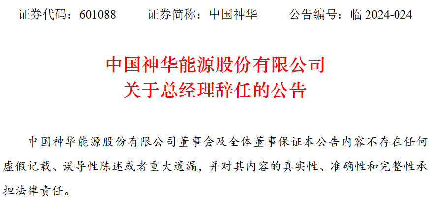 中國(guó)神華于5月31日發(fā)布公告稱,中國(guó)神華能源股份有限公司(“本公司”)董事會(huì)于 2024 年 5 月 30 日收到呂志韌先生遞交的書面辭呈。