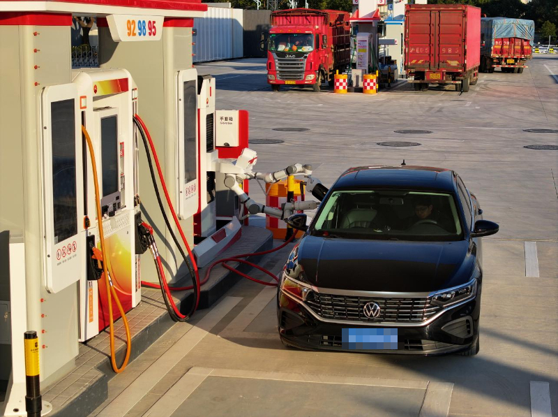 汽油加注區(qū)特別設(shè)置了加油機械臂,為廣大車主提供智慧加油服務