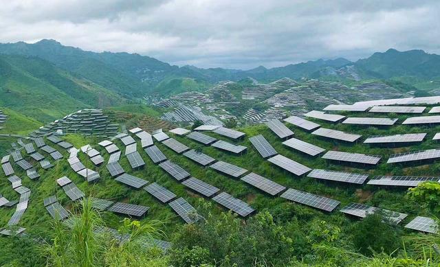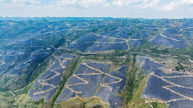 俯瞰黔中大地,不計(jì)其數(shù)的光伏板沿著山勢鋪滿了千溝萬壑,在陽光下匯成“藍(lán)色海洋”;一座座大型風(fēng)力發(fā)電機(jī)矗立山巔,巨大的葉片隨風(fēng)而舞,向電網(wǎng)源源不斷輸送綠電。