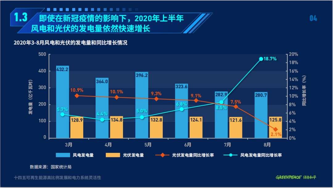 截至2019年底,全國(guó)非化石能源發(fā)電量為2.39萬億千瓦時(shí),占全國(guó)發(fā)電量的32.6%,實(shí)現(xiàn)2030年非化石能源發(fā)電量占比50%的目標(biāo)已過半程。而即使是在2020年新冠疫情的壓力下,中央政府也沒有松懈綠色復(fù)蘇和轉(zhuǎn)型的決心,今年上半年風(fēng)電和光伏的發(fā)電量分別同比逆勢(shì)增長(zhǎng)了6.8%和9.1%。在已提前實(shí)現(xiàn)了“十三五”可再生能源裝機(jī)目標(biāo)之際,今年6月,國(guó)家發(fā)改委和能源局進(jìn)一步提高了目標(biāo),計(jì)劃今年內(nèi)風(fēng)電和光伏發(fā)電裝機(jī)均達(dá)到240吉瓦左右。
