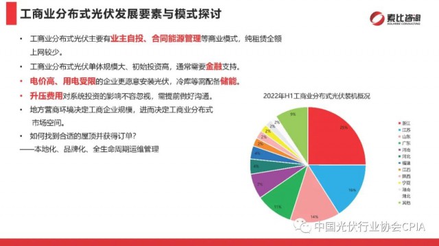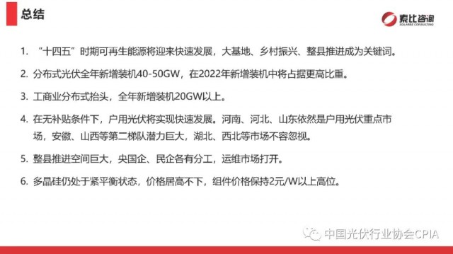 2022年9月27日,在中國(guó)光伏行業(yè)協(xié)會(huì)的指導(dǎo)和國(guó)內(nèi)領(lǐng)先的分布式戶用企業(yè)支持下,由索比光伏網(wǎng)主辦的“2022年中國(guó)戶用光伏品牌大會(huì)暨中東部省份分布式項(xiàng)目開發(fā)研討會(huì)”在浙江寧波召開。索比光伏網(wǎng)副主編尹也澤對(duì)光伏供應(yīng)鏈與分布式應(yīng)用市場(chǎng)進(jìn)行了回顧展望。尹也澤副主編分析,整體看,今年全年全國(guó)光伏發(fā)電新增裝機(jī)有望超過90GW,其中分布式光伏仍將占據(jù)“半壁江山”。