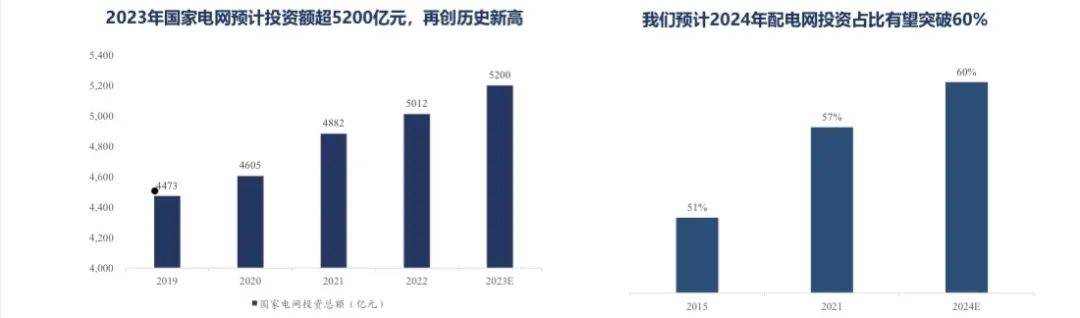 2019-2022年國家電網(wǎng)實(shí)現(xiàn)投資總額4473億元、4605億元、4882億元、5012億元,1月11日國家電網(wǎng)董事長辛保安在接受采訪時(shí)表示2023年將繼續(xù)加大電網(wǎng)投資,預(yù)計(jì)投資超5200億元,再創(chuàng)歷史新高,而電網(wǎng)投資結(jié)構(gòu)性特征突出,根據(jù)中電聯(lián)數(shù)據(jù),我國配電網(wǎng)的投資占比從2015年的51%提升至2021年57%。