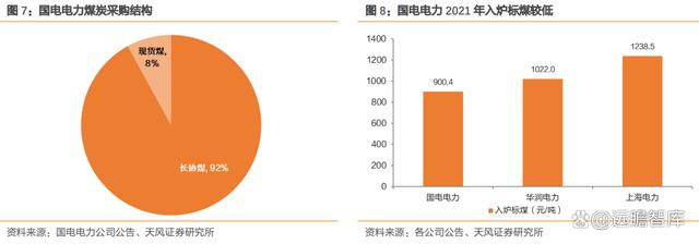 此外,上市公司國(guó)電電力充分利用集團(tuán)優(yōu)勢(shì),長(zhǎng)協(xié)煤占比高,有效緩解燃料成本壓力。公司充分利用國(guó)家能源集團(tuán)“煤電路港航”一體化產(chǎn)業(yè)協(xié)同優(yōu)勢(shì),提升內(nèi)部?jī)?yōu)質(zhì)長(zhǎng)協(xié)煤炭資源比例及兌現(xiàn)率。2021 年,公司共采購(gòu)煤炭 1.91 億噸,其中長(zhǎng)協(xié)煤總量 1.75 億噸,占比92%。公司把握采購(gòu)結(jié)構(gòu)和節(jié)奏,優(yōu)化采購(gòu)煤種和熱值,深入開(kāi)展精細(xì)化配煤摻燒;在燃料智能化、智能發(fā)電、電力安全生產(chǎn)標(biāo)準(zhǔn)化等方面,開(kāi)展了很多前沿探索,積累了很多成果經(jīng)驗(yàn),管控水平行業(yè)領(lǐng)先。從 2021 年入爐標(biāo)煤來(lái)看,公司僅為 900.4 元/噸,明顯處于行業(yè)較低水平。