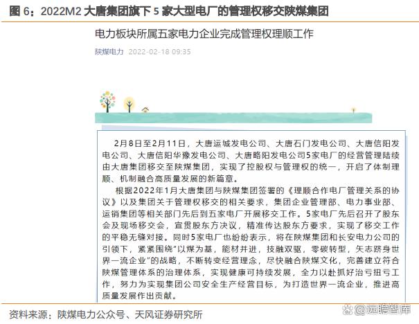 ? 大唐集團(tuán):2022M2 將旗下信陽(yáng)、信陽(yáng)華豫、略陽(yáng)、運(yùn)城、石門(mén) 5 家大型電廠的管理權(quán)移交給陜煤集團(tuán),實(shí)現(xiàn)控股權(quán)與管理權(quán)的統(tǒng)一。