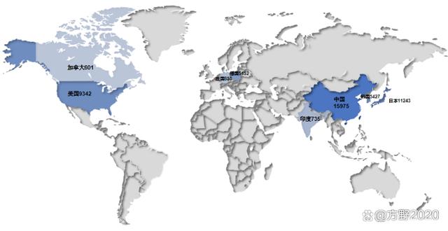 在過去20年間,車用氫能專利區(qū)域分布如圖5所示。中國、日本和美國在車用氫能技術領域擁有較高的專利申請量,是當前全球范圍內(nèi)較有技術競爭力和市場競爭力的地區(qū)國家。
