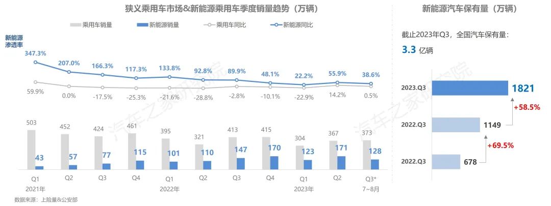 今年以來,國家層面針對(duì)汽車行業(yè)轉(zhuǎn)型升級(jí)的政策頻出,使得中國車企在新能源的浪潮中迎來重大的發(fā)展機(jī)遇。此外,商務(wù)部推動(dòng)“百城聯(lián)動(dòng)”汽車節(jié)和“千縣萬鎮(zhèn)”新能源汽車消費(fèi)季效果顯現(xiàn),這都無疑在讓中國的汽車產(chǎn)業(yè)從生產(chǎn)端與消費(fèi)端兩個(gè)方向,呈現(xiàn)出新能源汽車市場(chǎng)爆發(fā)式增長。目前,中國新能源汽車保有量已經(jīng)突破1800萬輛,今年1-8月新能源乘用車更是取得超420萬輛銷量的成績,同比增長逾三成,市場(chǎng)滲透率持續(xù)保持超30%的高水平發(fā)展。