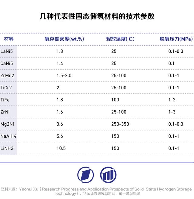 固態(tài)儲氫具備儲氫密度高、工作壓力低、安全性能好等優(yōu)勢,是安全用氫的發(fā)展方向,近年來商業(yè)價值持續(xù)提升。固態(tài)儲氫材料主要有儲氫合金、納米材料和石墨烯材料。其中,儲氫合金在我國已進(jìn)入商業(yè)化探索階段,鎂系、鈦系、稀土系三類固態(tài)儲氫材料技術(shù)路線前景被看好。