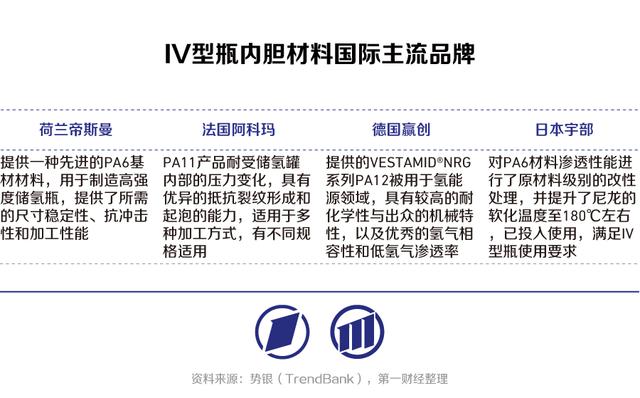 當(dāng)前國內(nèi)Ⅳ型儲氫瓶內(nèi)膽材料主要由國外企業(yè)供應(yīng),包括日本宇部興產(chǎn)、荷蘭帝斯曼、美國杜邦(塞拉尼斯)、法國阿科瑪?shù)?,成本較高,是下一階段國產(chǎn)化突破的重點。
