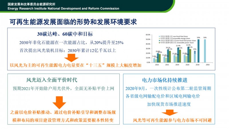 時(shí)璟麗老師在“2021光伏領(lǐng)袖大會(huì)”上的發(fā)言稿。時(shí)老師認(rèn)為:可再生能源要在能源轉(zhuǎn)型中發(fā)揮重要作用。2050年,中國(guó)要建成高比例可再生能源電力系統(tǒng)。其中,非化石能源占比將達(dá)到91%,風(fēng)電、光伏占比將達(dá)到73%!未來可再生能源的發(fā)展,從資源、技術(shù)、產(chǎn)業(yè)、經(jīng)濟(jì)性角度,均不存在瓶頸與障礙!