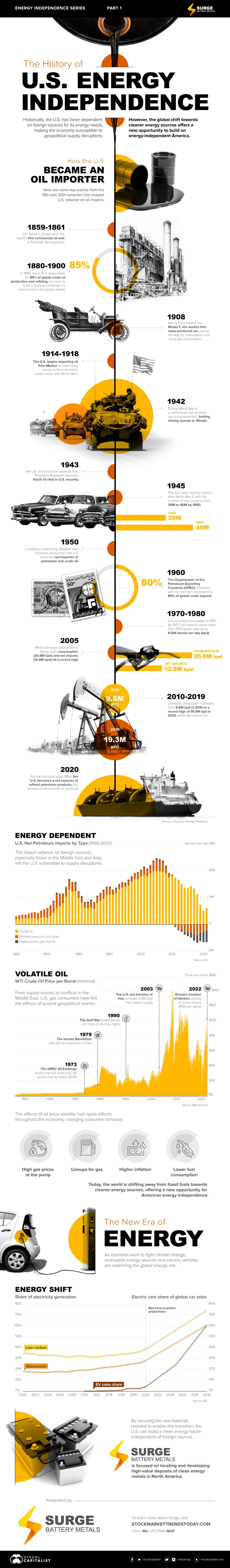 追求能源獨立長期以來一直是美國政治和外交政策的一部分,自20世紀(jì)70年代以來更是如此,但美國仍然經(jīng)常依賴石油進(jìn)口來滿足其不斷增長的需求。這種“能源對外依賴”使美國和美國消費者很容易受到供應(yīng)中斷和油價沖擊的影響。Virtutal Capitalist網(wǎng)站發(fā)表信息圖,顯示美國如何能源進(jìn)口依賴的歷史。