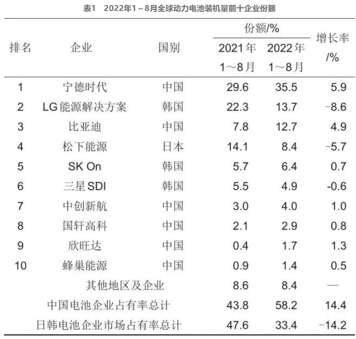 (2)日韓擴(kuò)大電池產(chǎn)業(yè)鞏固全球市場份額