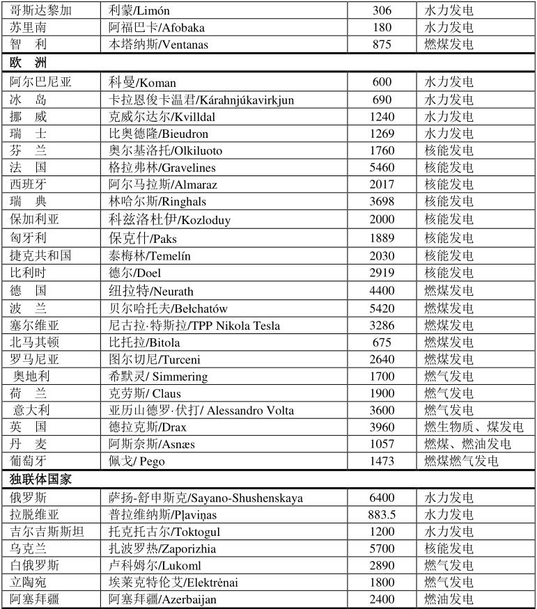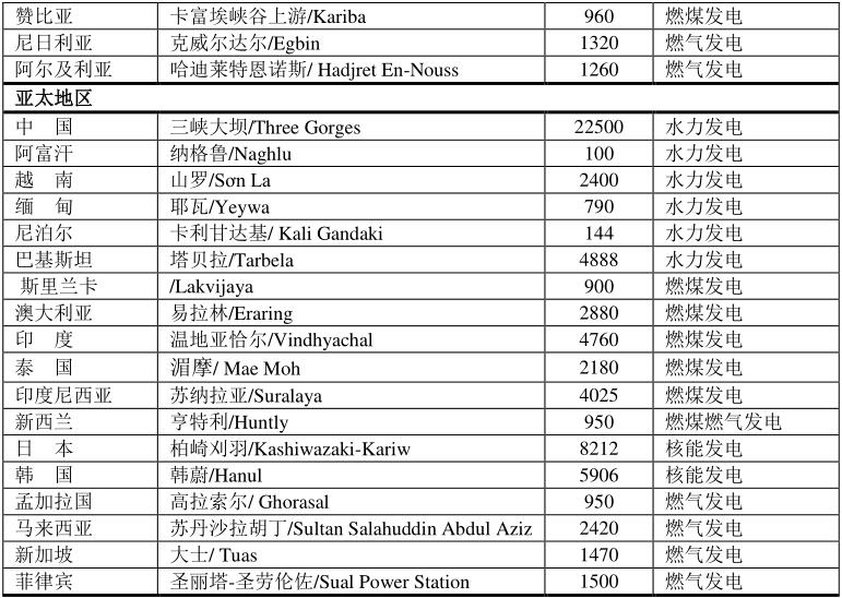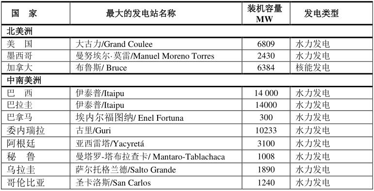 “世界各國(guó)最大的發(fā)電站”只是指最大的,可以看見(jiàn)最大最多的發(fā)電站最多的仍然是水力發(fā)電,其次為核能發(fā)電、燃煤發(fā)電;也有燃?xì)獍l(fā)電。根據(jù)各國(guó)的資源不同,最大的發(fā)電站也有特色,如中南美洲以水力發(fā)電為主,亞太地區(qū)的水力發(fā)電也很發(fā)達(dá)。