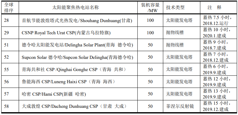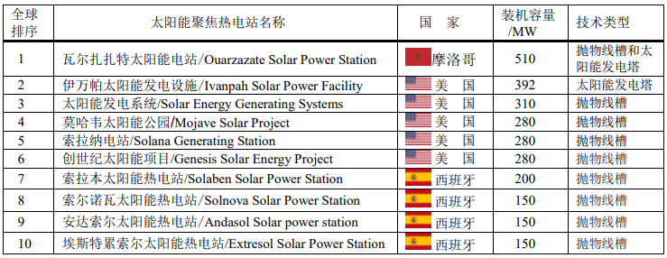 另外,中國還有五座太陽能聚焦熱電站已立項(xiàng)但尚未實(shí)施。
