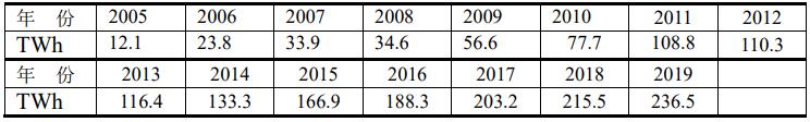 世界與中國燃氣發(fā)電的的比較(單位:TWh)